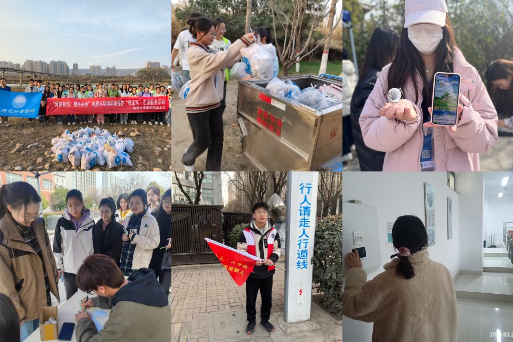 “河”你有约,携手共净。3月8日和月22日,学院先后组织100余名青年志愿者在宝鸡市渭河河滩开展净滩活动。志愿者们手拿印有地环logo的环保袋、手套和夹子等工具,对河道旁、堤岸上的生活垃圾、日常杂物等进行清理,该活动受到周边市民一致好评。