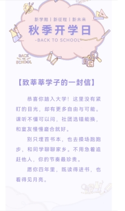 开学前,学院官方微信公众号“宝大地环之声”发布了迎新推文,内容涉及专业介绍、校园生活、学校资源等同学们最关心、最好奇、最困惑的问题,帮助新生提前了解学校和学院相关信息,能够在入学后尽快融入校园生活,完成角色转变,顺利开启学习成长之旅。
