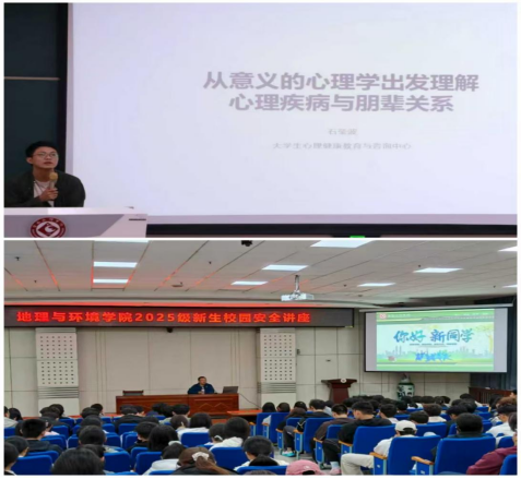 学院还组织新生参与了一系列线下教育讲座。大学生心理健康教育与咨询中心石莹波老师在博文楼副楼205教室为全体新生开展心理健康教育主题讲座。帮助新生建立大学生活的适应能力,建立主动适应的意识。从生活环境、饮食习惯、人际关系、学习动机、经济、心理、语言等方面尽快融入集体生活。保卫处周文斌老师在木铎厅开展了新生安全教育讲座,从用电安全、财产安全、骑行安全等校内安全隐患和人身安全、经济安全、交通安全、假期安全等校外安全隐患等方面向2025级新生普及校园安全防范基础知识。