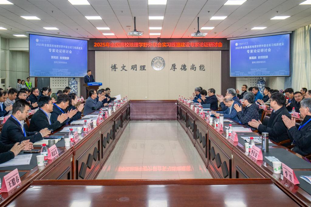 我校tyc33455cc太阳成集团院长、陕西省灾害监测与机理模拟重点实验室主任张俊辉汇报了学院基本情况、地理学科建设及2025年全国高校地理学野外联合实习线路建设专家论证研讨会的野外考察安排。