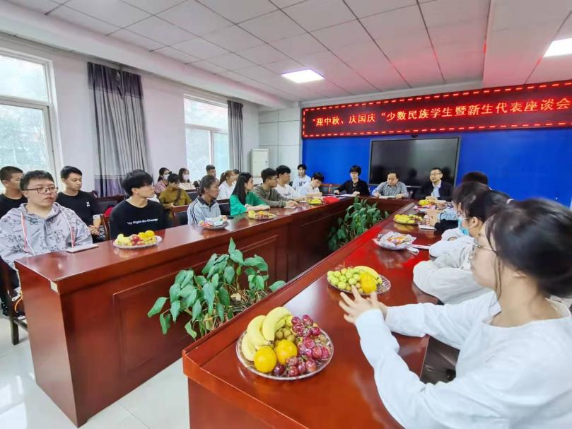 用真心系紧民族团结纽带,筑牢同心圆。9月17日晚,学院党政领导走访新生少数民族学生宿舍,详细询问了少数民族学生的学习生活情况,并送上节日祝福和月饼、水果等慰问品。9月18日中午,学院召开少数民族学生暨新生代表座谈会,学院党委书记俱国鹏、院长张俊辉出席了座谈会,会议由党委副书记梁文博主持。会上,集体学习了习近平总书记在西藏考察时的重要讲话精神。少数民族学生和新生代表从民族文化、学习生活等方面分享了自己的所学所获、所思所感。院长张俊辉鼓励同学们树立正确的人生目标,养成良好的学习生活习惯,树立多元化发展理念,助力健康成长。党委书记俱国鹏强调,要做好对少数民族学生的关心、帮助、服务、引导工作,一要做好思想引领,二要强化学业领航,三要提供帮扶指导,真正帮助少数民族学生成长成才。他希望同学们爱党、爱国、爱社会主义,树立远大的理想信念,希望同学们爱校、爱院、爱师长、爱同学,珍惜美好的大学生活。